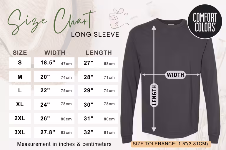 - Comfort Colors Tee / Long Sleeve Tee: This premium Comfort Colors tee / LS tee is crafted from 100% ring-spun US cotton, delivering a soft, garment-dyed finish for a vintage, lived-in feel. With a relaxed unisex fit, it offers all-day comfort and effortless style. Features: Durable 6.1 oz fabric, double-needle stitching for longevity, seamless design for a clean look, and pre-shrunk cotton for consistent sizing. Made with ethically sourced US cotton for sustainability and quality.