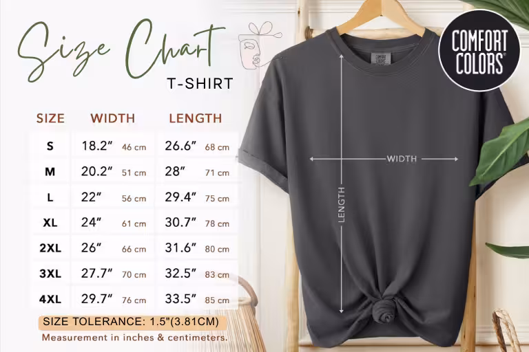 On Comfort Colors Tees, the final print will be approximately 10% smaller than shown in the preview.
