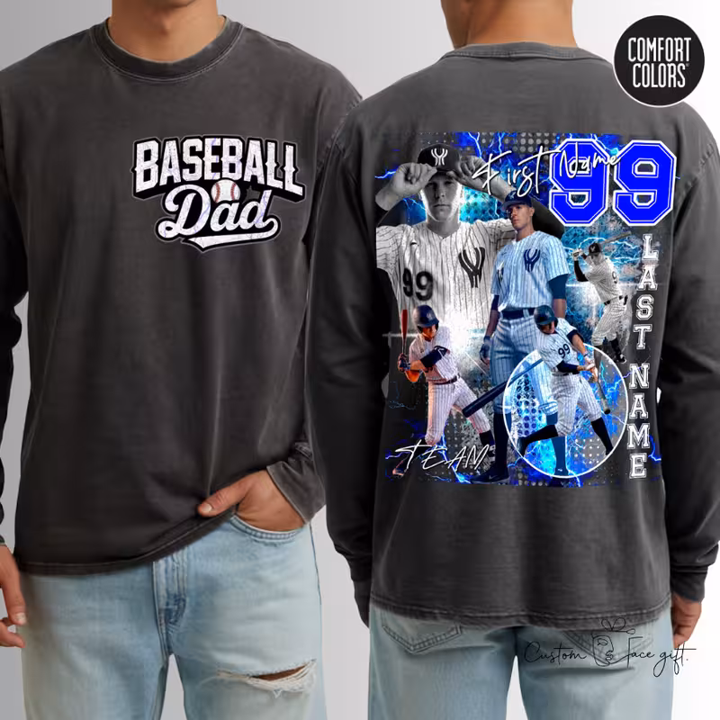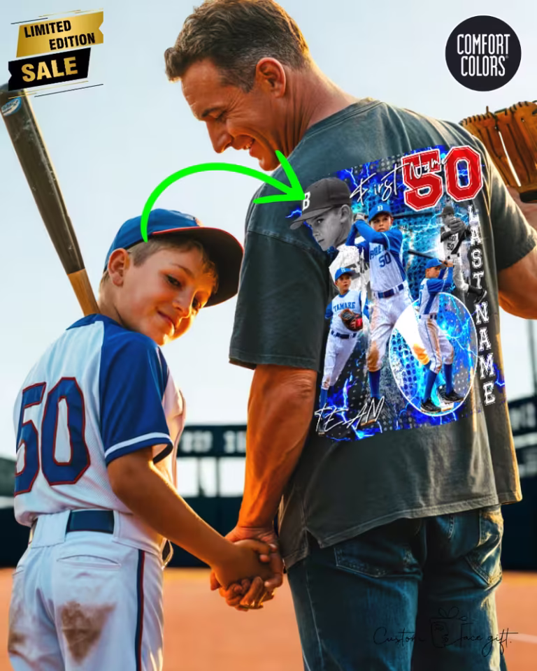 The Personalized Bootleg Baseball Dad Shirt – Family Legacy is made for the moms who go all in. With “Baseball Dad” front, and your player’s proudest moments printed on the back, this shirt is more than a game-day outfit — it’s a tribute.