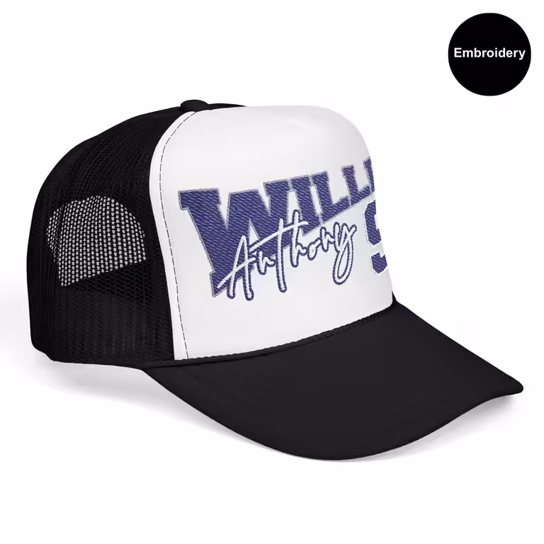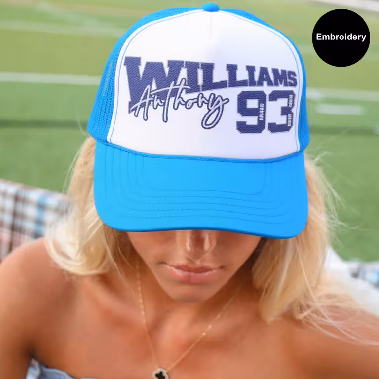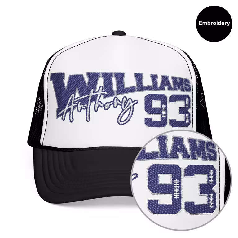 Show your football pride in style with this custom embroidered Foam Trucker Hat! Whether you’re cheering for your child, grandkid, or favorite player, this hat is designed to stand out. Add their first name, last name, and jersey number to create a one-of-a-kind piece you’ll wear with pride all season long.
